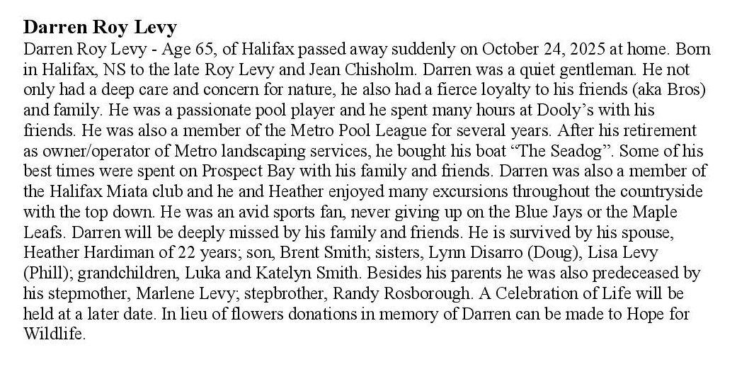 | Gallant, David Rodney | 2024 | 56 | Spryfield Legion (MPL) | obit |